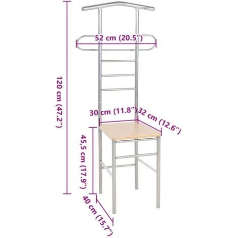 The seat is made of engineered wood. The sturdy metal frame allows you to enjoy the valet stands for years.
