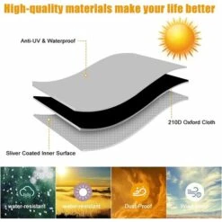 Fabriqué en polyester 210D. Le nouveau matériau présente une résistance supérieure aux couleurs, résiste aux UV, à la pluie, aux déchirures et aux fissures au froid, durable et dure plus longtemps, protège votre barbecue de la lumière du soleil, de la neige, de la pluie et de la saleté tout au long de l’année.