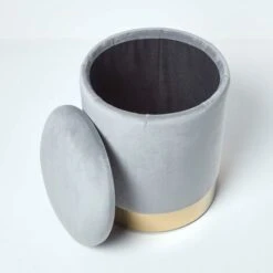 Measuring 38 cm tall, the Clarence is a sophisticated home accessory and is upholstered in a silver grey velvet with a reflective gold metal trim. A multifunctional pouffe with hidden storage, the removable lid uncovers ample storage space and is perfect for storing away unwanted clutter, magazines and remote controls. A decorative home accessory it can also be used as a footrest, vanity stool, occasional seat or as a simple yet stunning room accessory that will compliment all interior styles and colours.