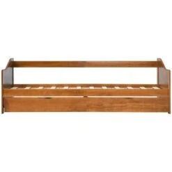 Combining the luxury of a sofa with the convenience of a guest bed, our multi-functional pull-out sofa bed will surely make a practical and eye-catching addition to any interior! Featuring a pull-out bottom bed that is equipped with 4 casters, the piece of furniture can be easily converted into a sofa during the day and a comfortable bed at night. This sofa bed frame maximises the available floor space while providing sleeping space for two people, making it an ideal choice for people with limited living space. Moreover, the bottom bed is equipped with a side board that will keep the user from rolling out while sleeping. The whole bed frame has a sturdy wooden construction, which makes it very durable, and suitable for day-to-day use. The item is easy to assemble. Please note delivery includes the bed frame only, mattresses are not included. You can check our shop for the matching mattresses.