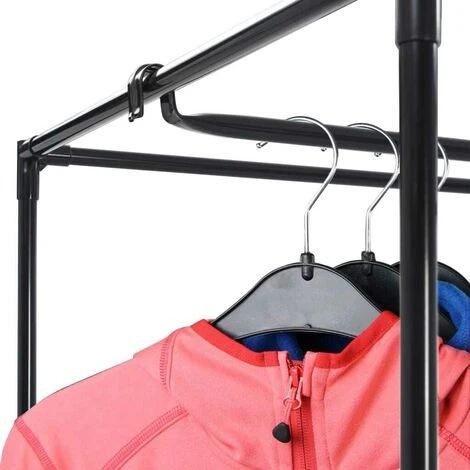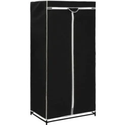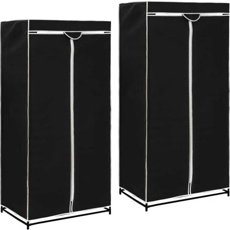 Featuring a sturdy iron frame and fabric cover with zippers, the wardrobe can protect your clothes from dirt and dust. The practical plug-in system makes it possible to mount this wardrobe without drilling or screwing. The base frame consists of sturdy iron tubes, which are joined together with connectors. The fabric cover is made of breathable polyester. The wardrobe consists of a main part with a clothes rail. Delivery includes 2 clothes racks.