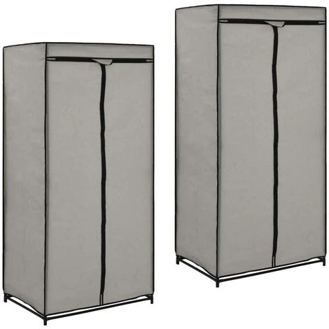 Featuring a sturdy iron frame and fabric cover with zippers, the wardrobe can protect your clothes from dirt and dust. The practical plug-in system makes it possible to mount this wardrobe without drilling or screwing. The base frame consists of sturdy iron tubes, which are joined together with connectors. The fabric cover is made of breathable polyester. The wardrobe consists of a main part with a clothes rail. Delivery includes 2 clothes racks.