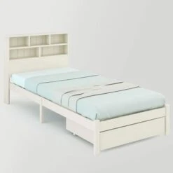 - 【Classic Minimalist Design】:The storage bed features a simple slatted wood design with simple lines and a crisp clean white wood finish that allows you to blend this piece of furniture with the rest of your decor, no matter which interior style you choose.