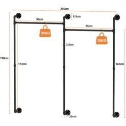 Industrial-style pipe clothes rack features a 80.7-inch long, allow you can place almost everything on the hanger: shirts, T-shirts, trousers, tie, suits. Pipe design creates unique design, i’ll look nice and more solid than the usual one.