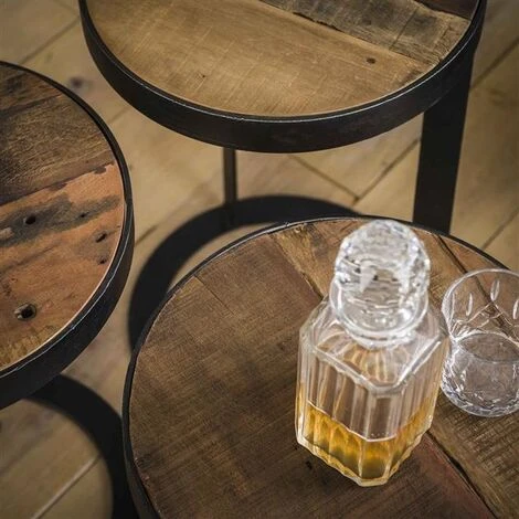 This side table set is everything you are looking for in a piece of furniture! The round design makes the side table attractive. It has an industrial but retro look, due to the use of wood and metal.