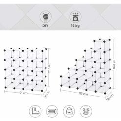 - Quality Matters: Featuring quality ABS connectors, a sturdy metal frame, and water-proof, easy-to-clean PP plastic sheets in timeless white, each 22 x 35 x 22 cm (L x W x H) slot can hold up to 5 kg; plus, anti-tip devices are included to give your collection a safe perch