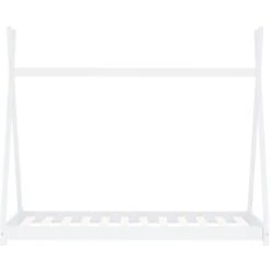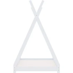 Create the ultimate hideaway in your children’s bedroom with our fantastic wooden bed frame! The bed features novelty crossover framework inspired by the cool tipi style tents where you can hang bed curtains to create privacy for your kid. It can also be used as a reading nook or a play house for your child. Made of solid pine wood, this bed frame is exceedingly sturdy and durable. The strong slats offer the needed support and are highly comfortable. This bed frame is suitable for a mattress of 80 x 160 cm. Please note that delivery includes a bed frame only; a mattress and curtains are not included. The bed is easy to assemble. You can check our shop for the matching mattresses.