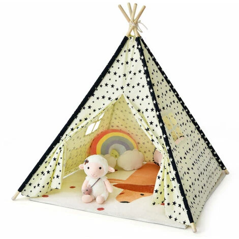 - Natural Cotton Canvas & Sturdy Pine Frame: Made of 100% natural cotton canvas and pine wood poles, this teepee playhouse ensures safety and durability. The cotton canvas material is soft and non-toxic for children direct touch. Non-slip foot pads enhance stability and sturdiness of teepee.