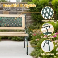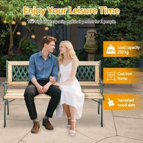 * Back support: Wooden back support with cast iron effect plastic back.