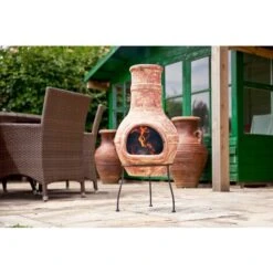 The classic design with clay construction and steel frame will withstand very harsh weather , and an open door makes filling and cleaning very easy.