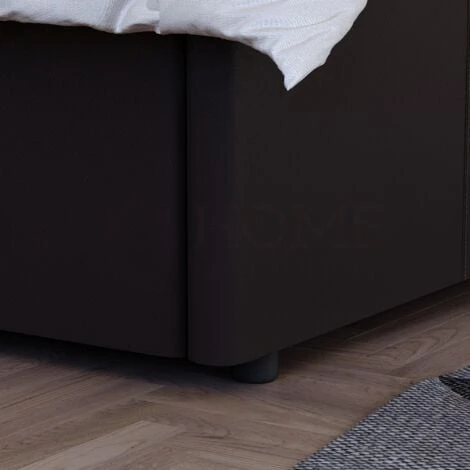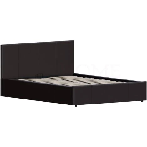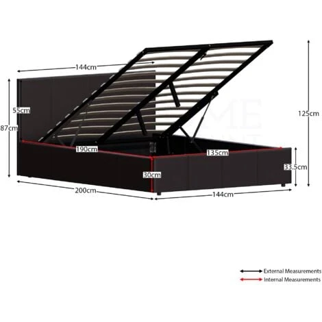 Home Discount offers this stunning new product with a modern stylish design, the Lisbon Double Ottoman Faux Leather Bed. This stunning bed frame is made from sturdy plywood. Unlike solid wood, which is strong only across the grain, plywood is tough regardless of directional force, making it very good at resisting sharp blows and wear and tear. This gorgeous ottoman bed when lifted offers a plenty of storage for that seasonal clothing you don`t know where to put. Fitting a standard double size mattress this bed frame is perfect for couples. With its shiny and textured appearance, this faux leather bed frame would look fantastic in any room interior, giving your bedroom a feeling of warmth and opulence.
