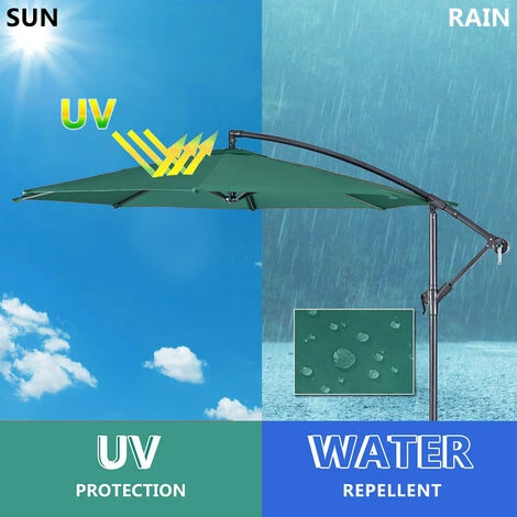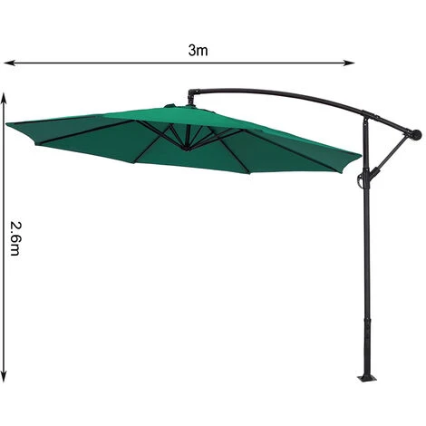 * Diameter 3m hanging garden parasol hangs over your dining set or garden set.