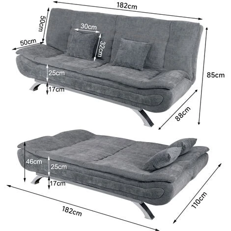 Sofa Bed Size: 188cm W x 114cm D x 46cm H