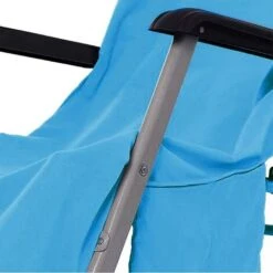 1.The beach lounger cover measures 85” x 30”/215 x 75cm. And this lounger cover is made of super fine fiber velor and it has no elasticity but perfectly fits most sun loungers and pool chairs.You can use it as a liner for the beach chair,