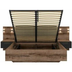 Luxury Euro King Size Bed Frame with LED Lights USB Ports Bedside Cabinets Lift Up Ottoman Storage in Oak Black Finish – Premium Bedroom Furniture Kassel