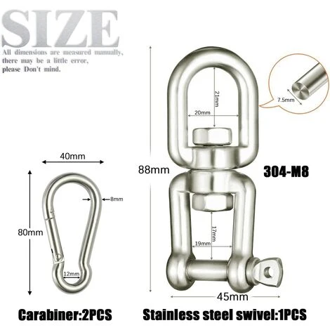 Wide Use: Suitable for hanging springs, wall mounts, ceiling mounts, tree mounts, carabiners, etc. Suitable for hanging chairs, hammocks, swings, hammocks, swings, sandbags, canopies, flags, banners, turntables. Suitable for indoor and outdoor use.