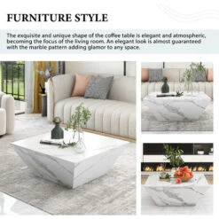 - Unique Design: Glossy marble veneer trapezoidal coffee table, unique and stylish design, marble veneer texture brings a modern and simple artistic sense to your home.