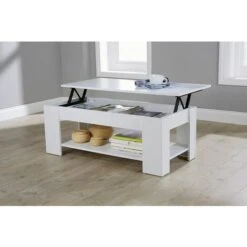 Our range of modern coffee reception tables with a new twist. The Tabletop features a mechanical lifting lid for extra height, making it easier to work or eat from. This unique design also provides additional hidden storage space inside, designed to help you to keep your living room clutter-free! Underneath this extending table top is a full-length shelf This unique design also provides additional hidden storage space inside, designed to help you to keep your living room clutter-free!
