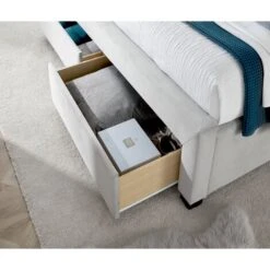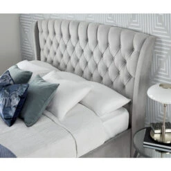 Contemporary yet sophisticated, the Newton Velvet Storage Bed brings a touch of elegance to your bedroom. The bed frame itself comes with 4 discreet and durable drawers that are perfect for all your bedroom essentials. These drawers are wheel free for ease of use. The bed is finished in a beautiful, soft-to-touch velvet fabric and is complete with a deep diamond patterned buttoned headboard. The sprung slatted base provides extra support and comfort for any mattress. This sophisticated and versatile bed offers a fantastic storage solution without compromising on style. Double bed Length 213.5cm Width 174cm Height 123.5cm. King Size bed Length 223.5cm Width 189cm Height 123.5cm.