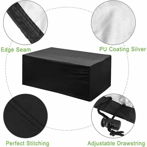 - 【High quality and sturdy material】 Durable and high density 210D Oxford polyester fabric with thickened silver interior coating and taped seams provides long lasting protection for your outdoor furniture. The garden furniture protective cover is waterproof, snow, dust and UV resistant.