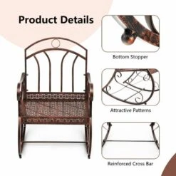 The iron construction and powder-coated finish make this rocking chair durable and sturdy. Colorfast varnish of the surface also adds extra charm and durability to the chair. The novel and attractive style of the rocking chair well matches your outdoor decor and adds more beauty to the surroundings. Furthermore, the outdoor rocking chair is ergonomically designed with the inclined seat and curved armrests. Therefore, you will get optimal comfort sitting on it. And you can also rock comfortably with the smooth rocking motion.