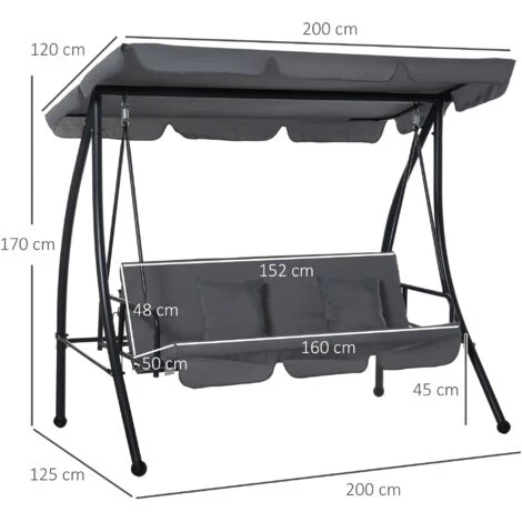 • Swing seat with canopy, perfect for relaxing in the garden during the summer. Seats three people