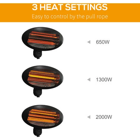 • Three heat setting (650W/1300W/2000W), easily controlled by a single pull rope