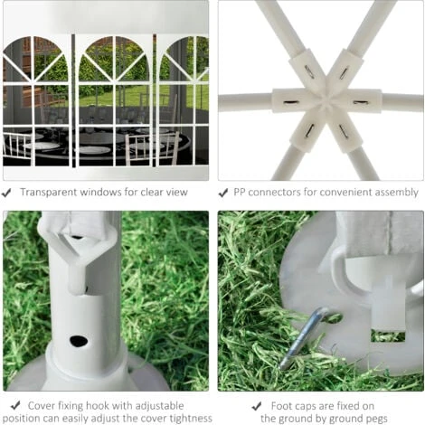 • Six guy ropes and 12 ground nails included to pin and secure to the ground