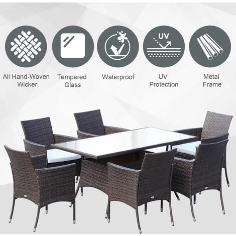 ● 7 pieces of rattan garden furniture consists of 1 table and 6 chairs