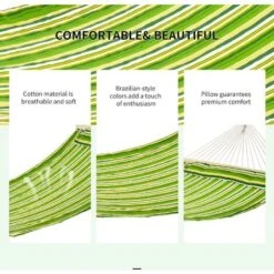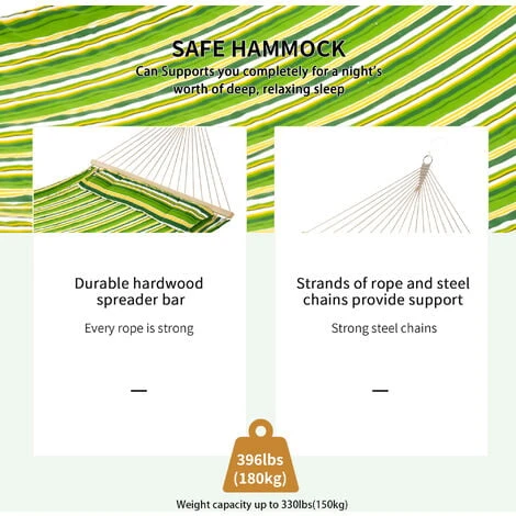 This Outsunny travel hammock with modern shape and multicolor stripe design, can be an ideal addition to your patio, yard or garden. You can take this light bedroom hammock anywhere for camping, hiking, napping or vacation, and no bothering frame needed. You can relax anywhere with trees. Adjustable height and portable design bring more convenience for using. With this string hammock, you can take a comfortable nap on your porch, under a tree or by the seaside for hours of relaxation.