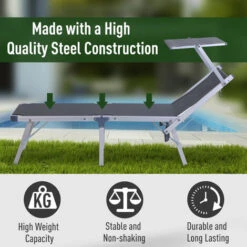 • Combines a classic lounger with an overhead canopy to protect your face from the sun