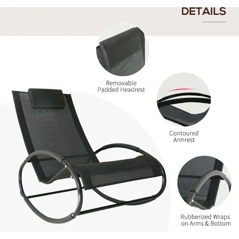 Designed with complete relaxation in mind, this patio rocking chair from Outsunny is perfect for your garden, patio and other outdoor areas. Made from aluminium, the orbital shaped rocking frame is both lightweight and robust to provide you years of reliable use. And the top is covered with a UV and water resistant texteline cover, allowing your skin to breathe and withstanding heavy wear and tear. Our garden rocking chairs for adults is the perfect addition to your outdoor and garden furniture.