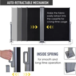 • Easy to use and set up: simply position and fix the two steel frames to cement/solid wood, where the canopy will extend and fix from a steel post to the other securely
