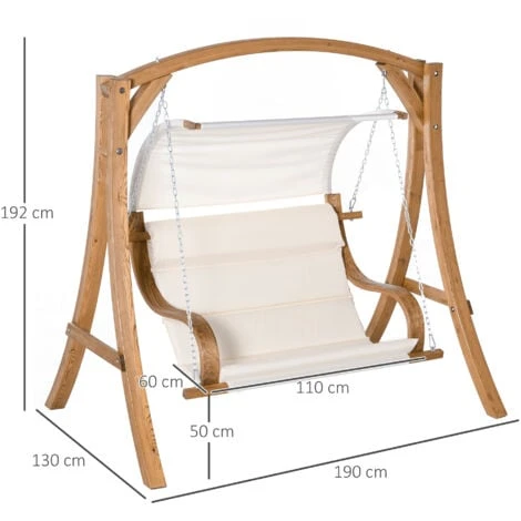 • Curved two-person seat and armrests allow you to sit on this wood garden swing comfortably