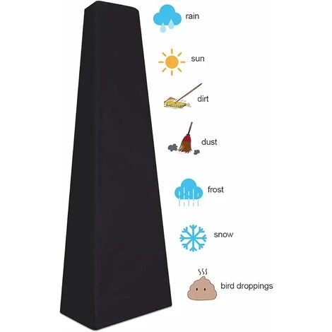 resistant and keep the patio heaters in a new state for a long time. - 【Heat Cover Protector In Universal Size】: 24L x 21W x 87D inches (61 x 53 x 221cm).Can fit most outdoor pyramid-stylestand-up patio heaters, can effectively reduce your troubles when buying. Ideal for everyday use, particularly useful during the off-season.