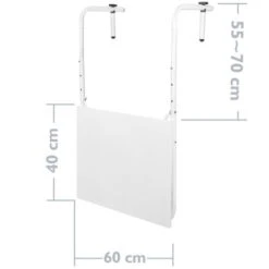 - Folding table for exteriors and interiors, 60 x 40 cm white, ideal for all types of balconies, terraces and railings with a maximum thickness of 13 cm.