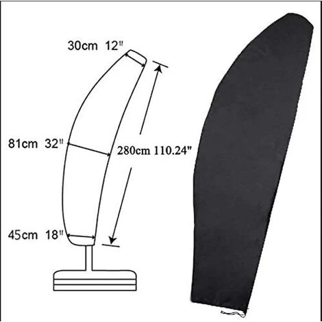 This parasol protection cover is suitable for outdoor parasols with a diameter of 2 to 4 m. It is recommended that you measure the size of your parasol before purchasing the parasol cover.