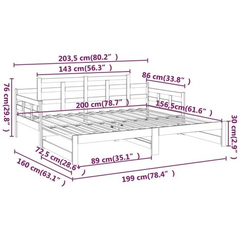 - Overall dimensions(extended): 203.5 x 160 x 76 cm (L x W x H)