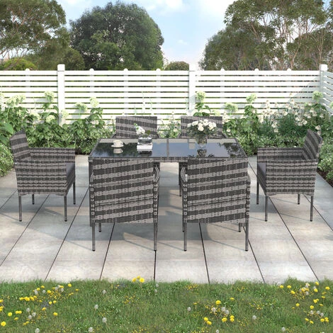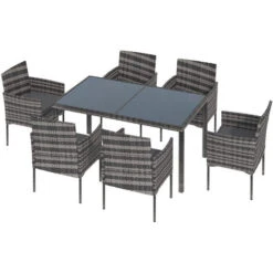 This 7-piece Outdoor Rattan Dining set include 1 table, 6 armrest chairs and 6 cushions, it is perfect for any occasion – family dinner party or friend’s party, you can enjoy the great weather and great time with your whole family or your valued friends and guests. Just have fun together!