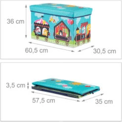 Fill the large storage space of this toy chest ottoman with items like balls, building blocks, stuffed animals, children’s clothing, etc. This way, all clutter and chaos can disappear in no time at all. What is more, your child can not only use this toy box as storage, but also as a comfy seat! When not in use, easily fold the chest together and stow it away. Kid-friendly designs on the folding box fit in seamlessly and make tidying up a real treat.
