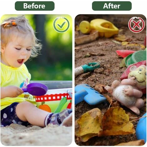 【Size】120x120x 20cm (LxWxH). Please confirm your bin size. sand before buying【Multi-function】Not only does it prevent rain from wetting toys and sand in the bunker, but also effectively prevents leaves, insects, animal droppings and other debris from falling.【Waterproof material】 sand is made of high quality 210D oxford fabric. with waterproof coating, UV resistant, anti-aging, anti-fading, waterproof, dustproof, can be used in any season of the year ;e, providing year-round protection for the sand.【Drawstring Design】 sand comes with a drawstring design. It is advantageous to cover the container tightly. sand with the cover, which not only effectively prevents leakage, but also effectively protects against the wind, thus protecting the sand and toys from contamination.【Easy to clean ; install and storing】 The lid of the tray. sand is foldable and can be stored to save space when not in use. water, then put it in the sun to dry it, easy to clean. clean