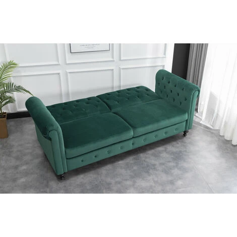 This Luxurious deep button Upholstered 3 seater chesterfield sofa bed is produced in high quality with stunning durable velvety fabric which is available in 3 colors. The sofa bed will surely make your living room look chic!