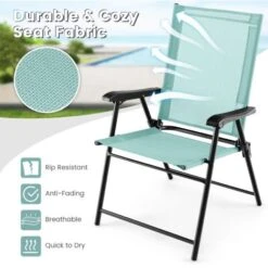 When you receive the package, just unbox, take these chairs out and unfold them. These sling chairs are ready to use! These patio dining chairs feature breathable fabric to avoid stuffiness on summer days. And the sturdy and rustproof metal frames tell you how stable they are. If you wanna fold these patio chairs, please unlock the fixing devices. Then these chairs will be immediately folded for easy carrying and storage.