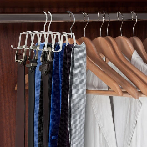 If you are thinking about lining up your belts, ties, handkerchiefs and other accessories in a neat and tidy manner, you should reserve some space in your wardrobe for this organiser. The 14 hooks facing left and right on this robust iron wire hanger enable you to hang up belts neatly. This is especially beneficial to fragile materials that can be damaged be folded or rolled-up storage.