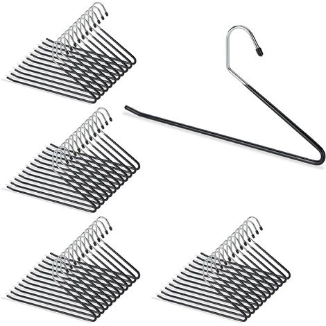 These clothes hangers are open end and thus perfect for hanging up skirts and trousers. The non-slip coating prevents garments from slipping off. The coat hangers are made of metal with a black, PVC coating. The trouser hangers feature a compact design and take up little space in your closet or wardrobe.