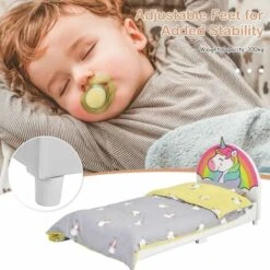 Are you looking for a comfortable and lovely bed for your little one? Our toddler bed with soft headboard and footboard is wonderful for you. The cute appearance will appeal to your children and attract them to spend their rest time in this bed. Besides, sturdy bed frame and adjustable feet offer enough support for your kids and can satisfy different needs. Made of premium material, this toddler bed can stand the test of time and you can use it for years without worry. Plus, the appropriate size and height is suitable for your child to get on and out of bed. Don’t miss it!