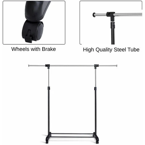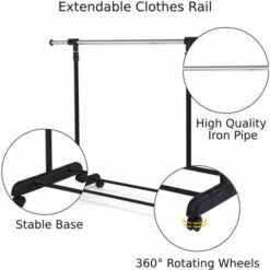 With this thoughtful open closet, you can have ample space to store and organize your clothes and shoes. The extendable rod meets your private need with side stoppers to avoid cloth falling. Smooth-rolling casters have brakes to immobilize the cart, and when the cloth rack is out of duty, the collapsible design helps to fast disassemble the parts for easy storage. It is great for laundry room, bedroom, even for display in a store or market.