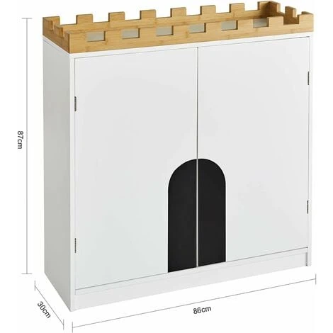 This cabinet for children has 3 shelves behind the doors and a small compartment, offers enough space for children’s items, a very good design for storing books or toys.