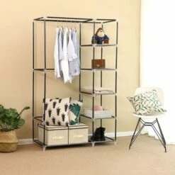 Songmics cloth wardrobe will give a perfect solution to disorder in the room full of clothes, socks, etc. The comfortable and practical wardrobe will fit in any room! You will save a lot of space with this wardrobe, and your clothes will always be well placed. The wardrobe is space-saving that the long dresses, jackets, shirts can be hung up, and the inner shelves provide more space for folded clothing. The front doors protect your clothes from dust and dirt, with zips for more convenience. The cover is made of non-woven fabric and the steel tubes provide a stable support for the cabinet. It can also be assembled and moved easily. So Songmics wardrobe must be a great choice for you!