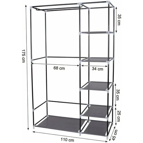 4. Storage and Load – Overall size of 110 x 45 x 175 cm which provides sufficient storage space to meet your daily needs, pipe diameter of 16 mm ensures its stability. The bearing capacity of each interlayer is up to 5 kg and the bearing capacity of hanging rod is 25 kg with even distribution of weight